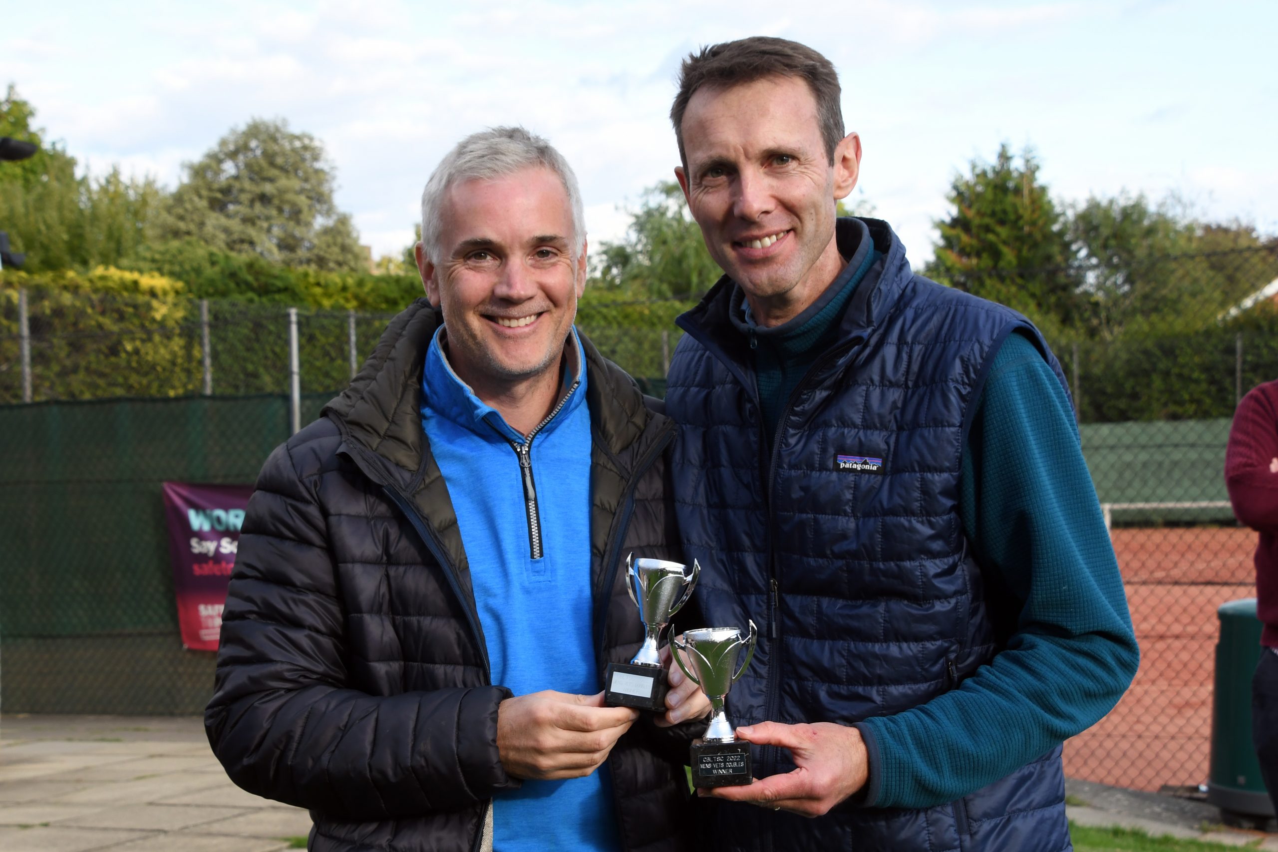 The Vets Singles saw him once again face Fergal across the net. This was a great game of aggressive tennis with a flow of winners from both players. Fergal raced to a 5-2 lead in the first set but Jonathan dug in his heels and won the next 5 games taking the set 7-5. The second set proved even closer but eventually Jonathan took the tie-breaker to retain the title.