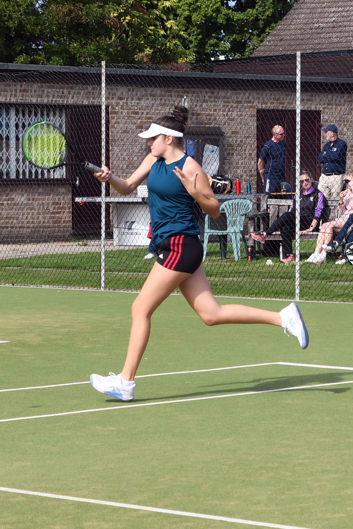 The ladies’ singles event between Millie Salloux and Emily Koya, again last year’s runner-up to Millie’s sister Chloe, was a case of youthful potential versus more seasoned experience. On this occasion the strategies employed by Emily proved effective in countering Millie’s aggression and weight of shot, with Emily winning in two sets, 6-2, 6-3.